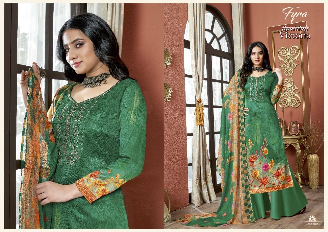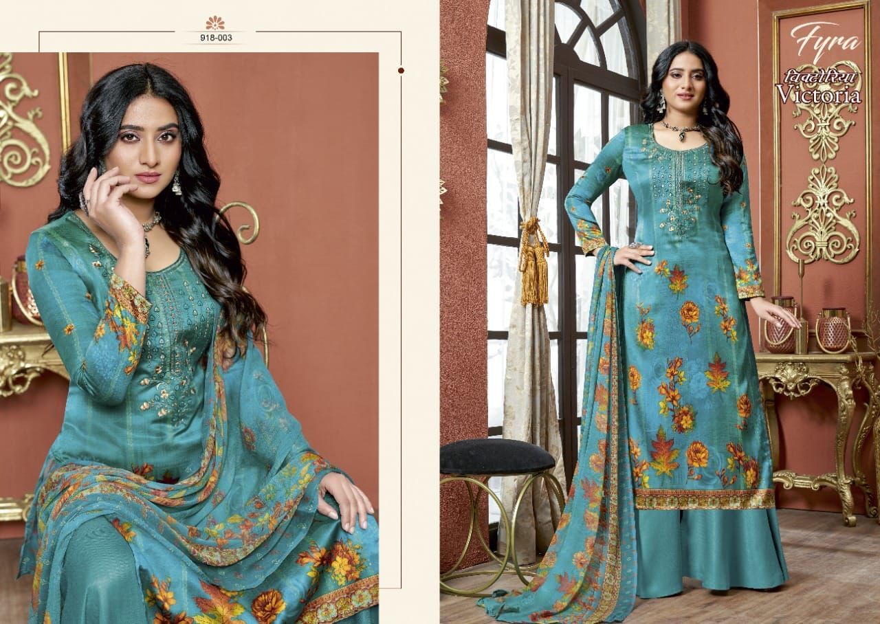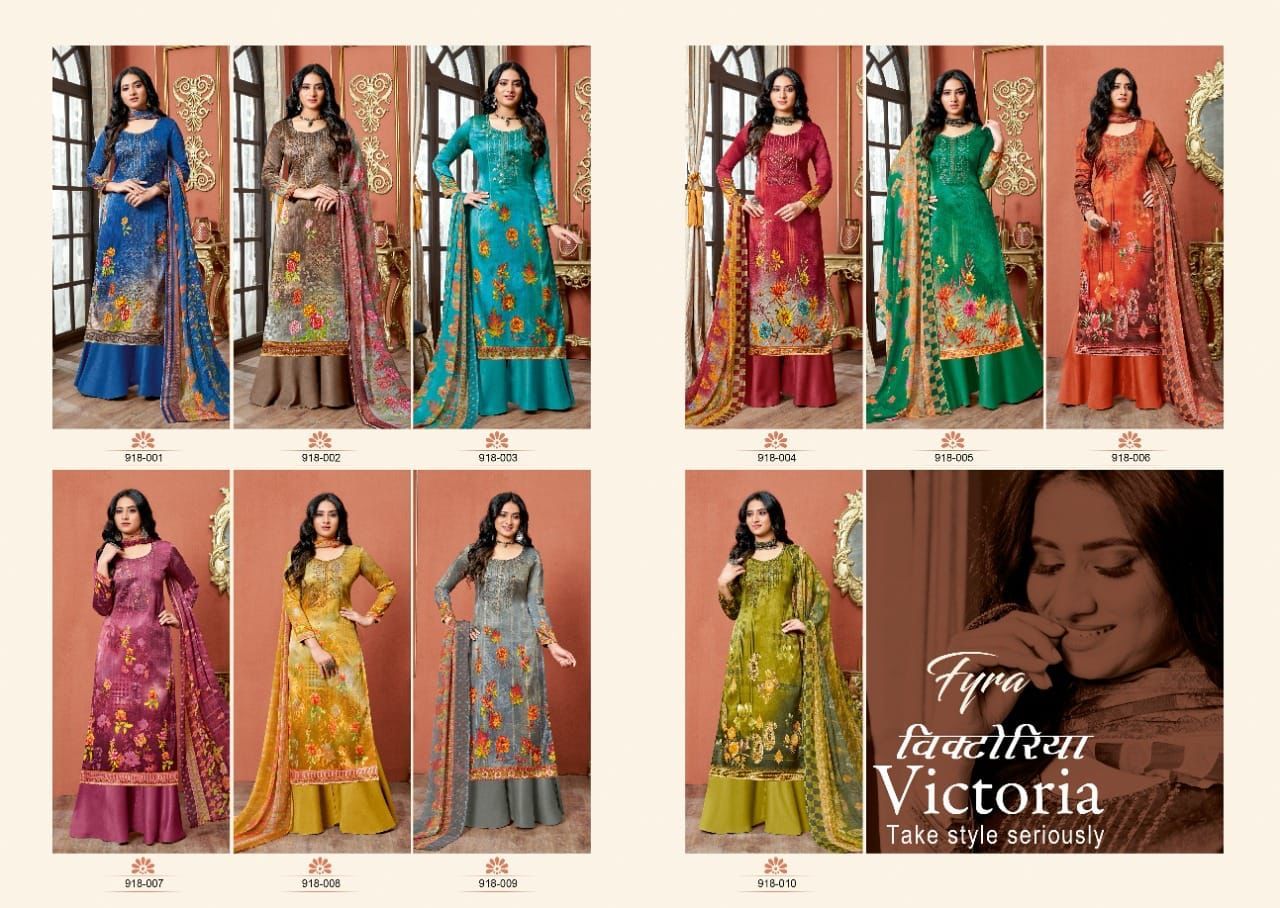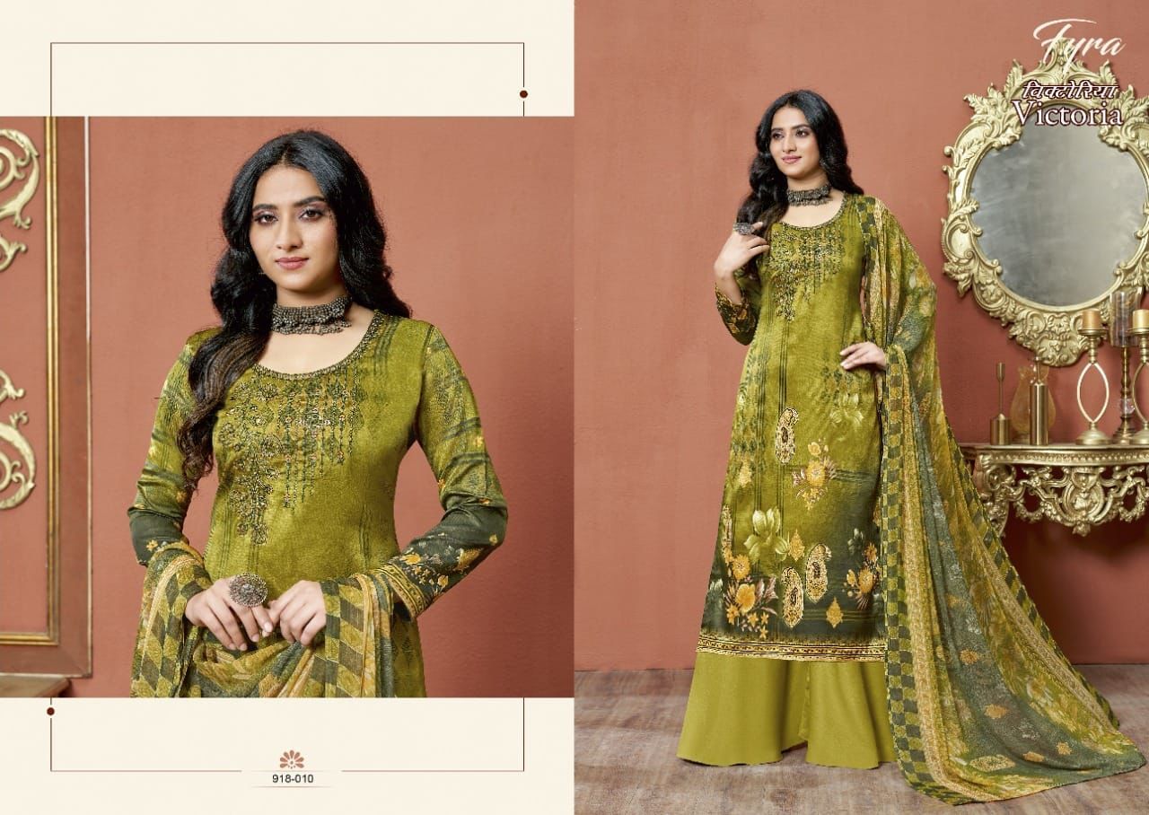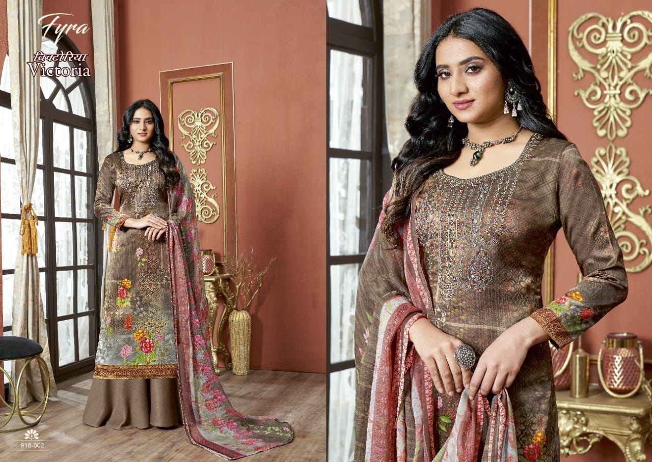 Victoria By Fyra Designer With Printed And Work Zam Cotton Suits Are Available At Wholesale Price
