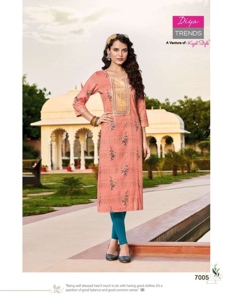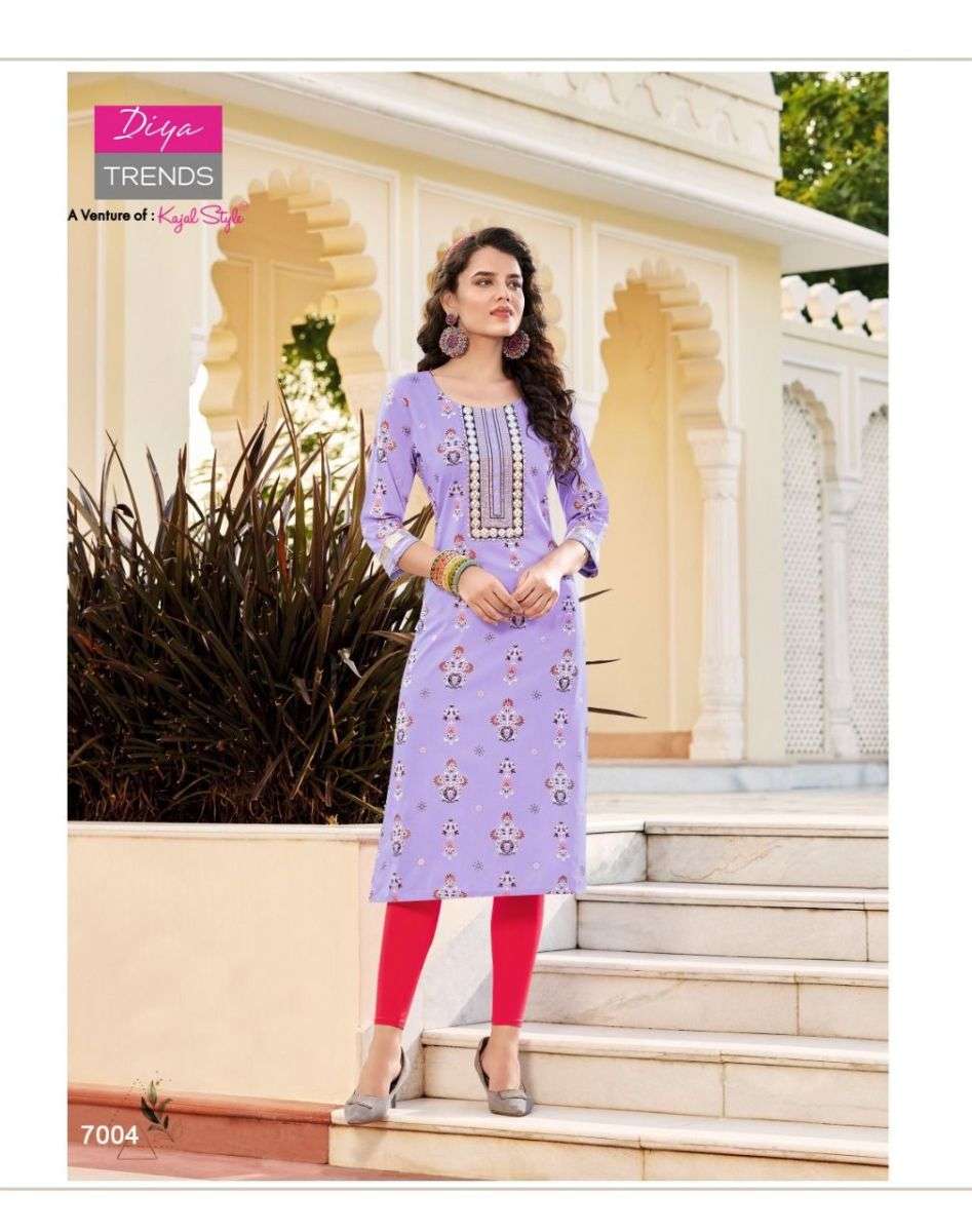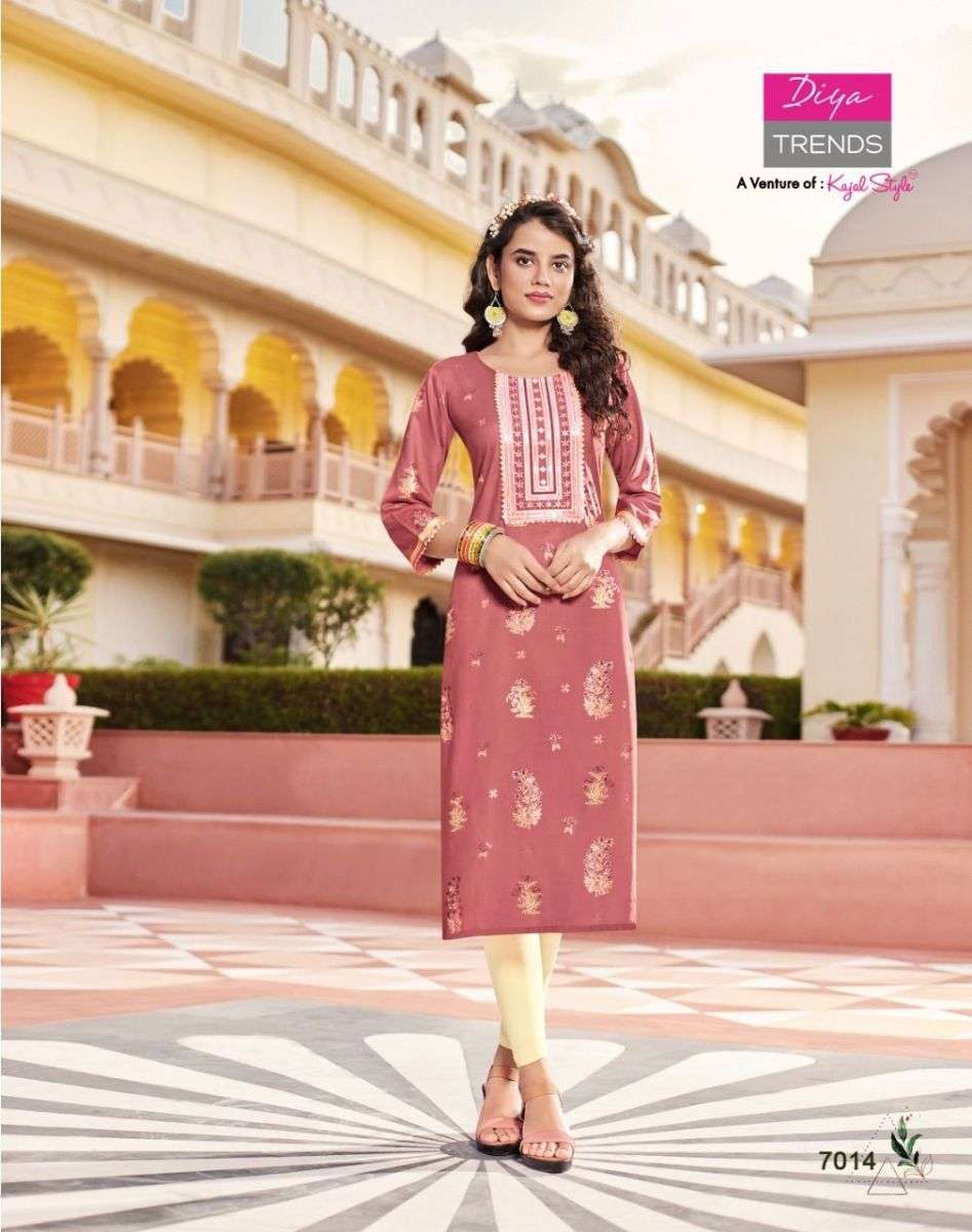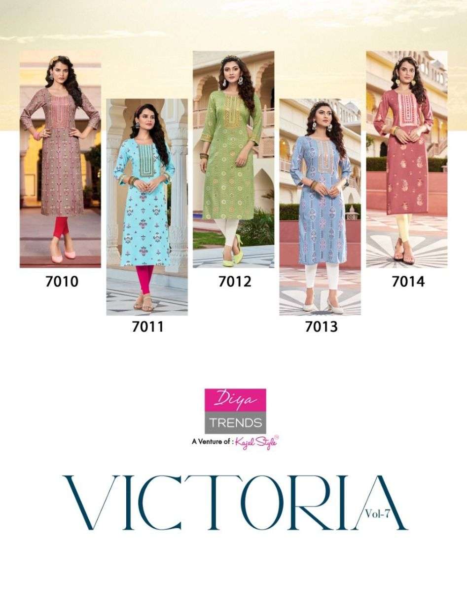 VICTORIA VOL-7 KURTI BY DIYA TRENDS DESIGNER WITH FOIL PRINTED RAYON KURTIS ARE AVAILABLE AT WHOLESALE PRICE