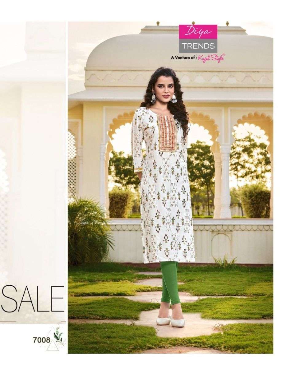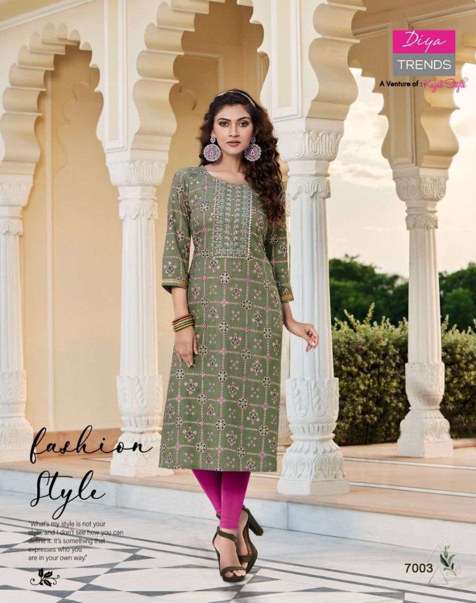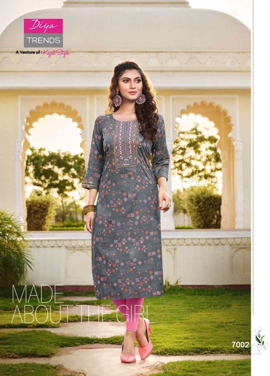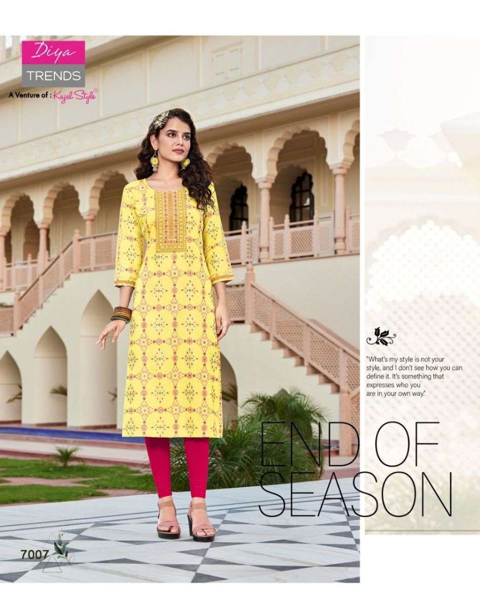 VICTORIA VOL-7 KURTI BY DIYA TRENDS DESIGNER WITH FOIL PRINTED RAYON KURTIS ARE AVAILABLE AT WHOLESALE PRICE