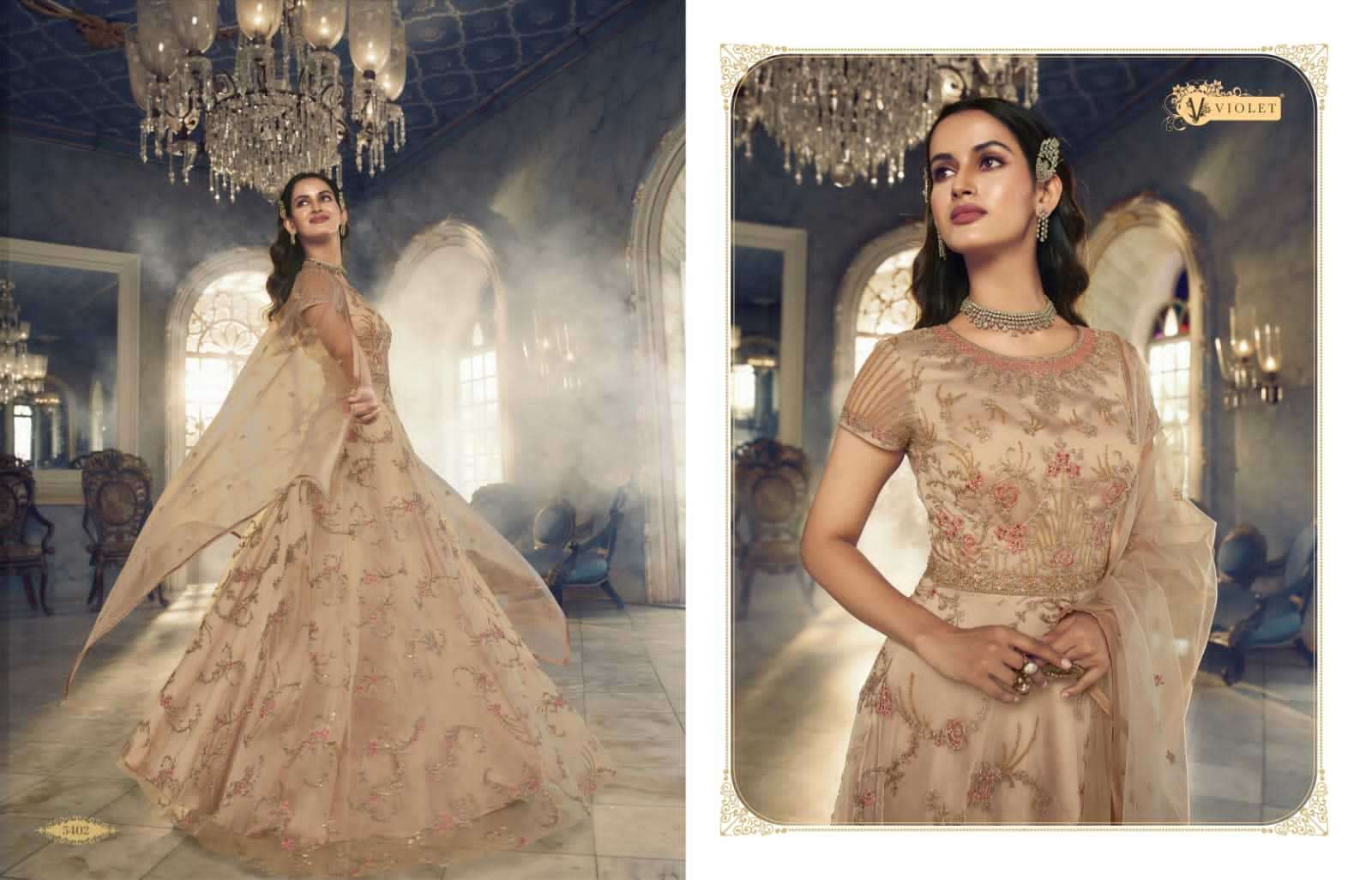 VIOLET BY SWAGAT DESIGNER WITH HEAVY WORK BRIDAL WEAR NET SUITS ARE AVAILABLE IN SINGLES AT WHOLESALE PRICE