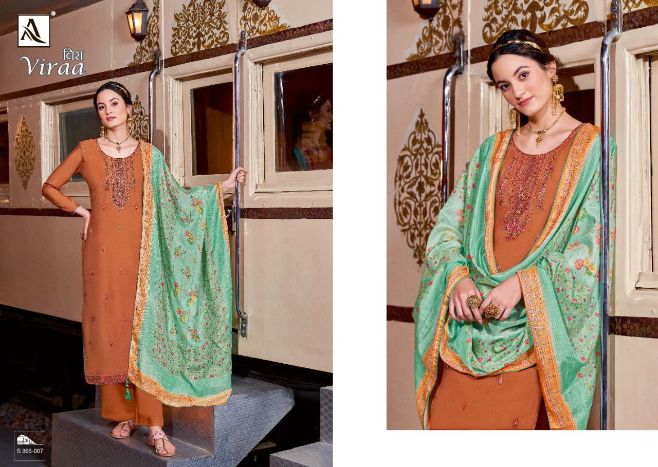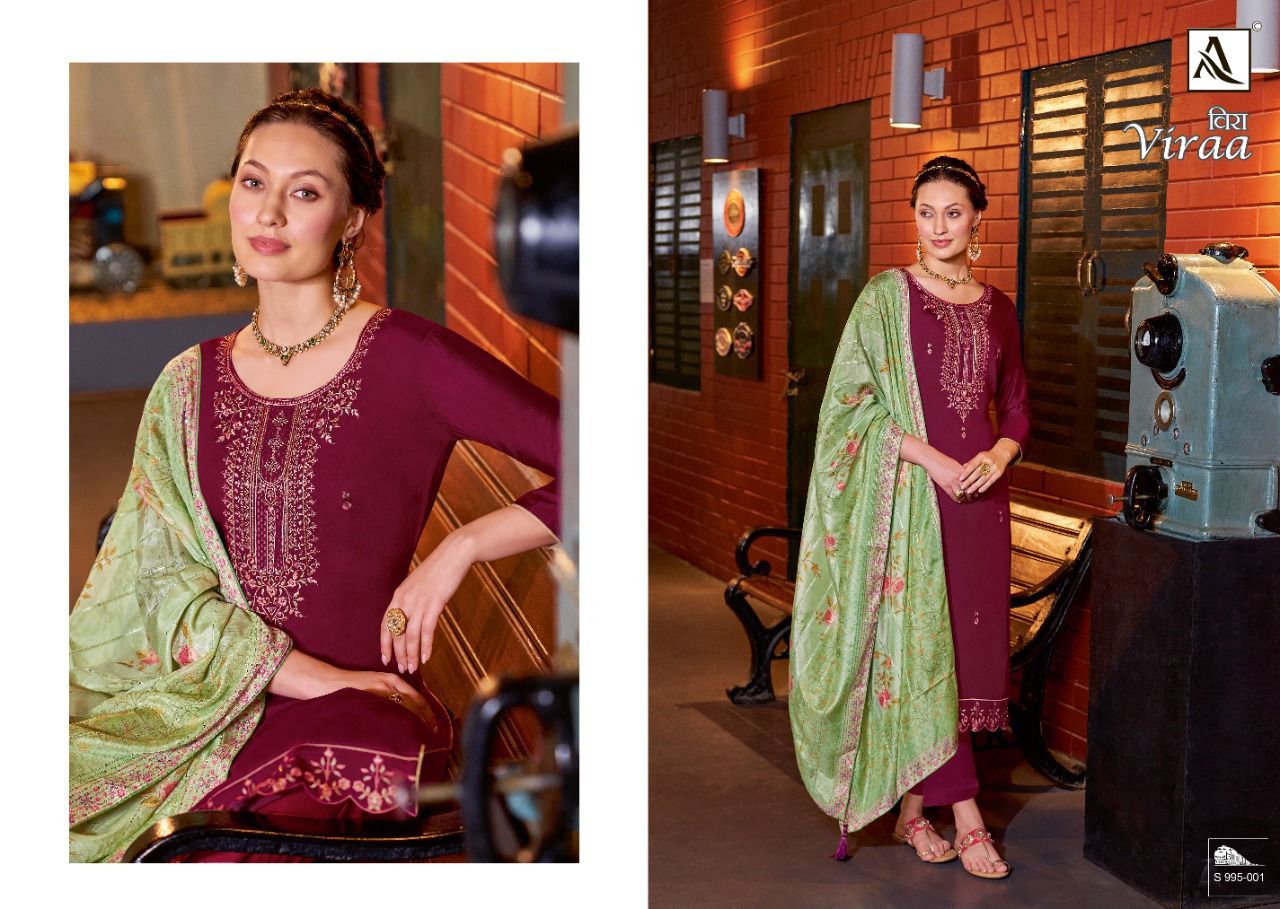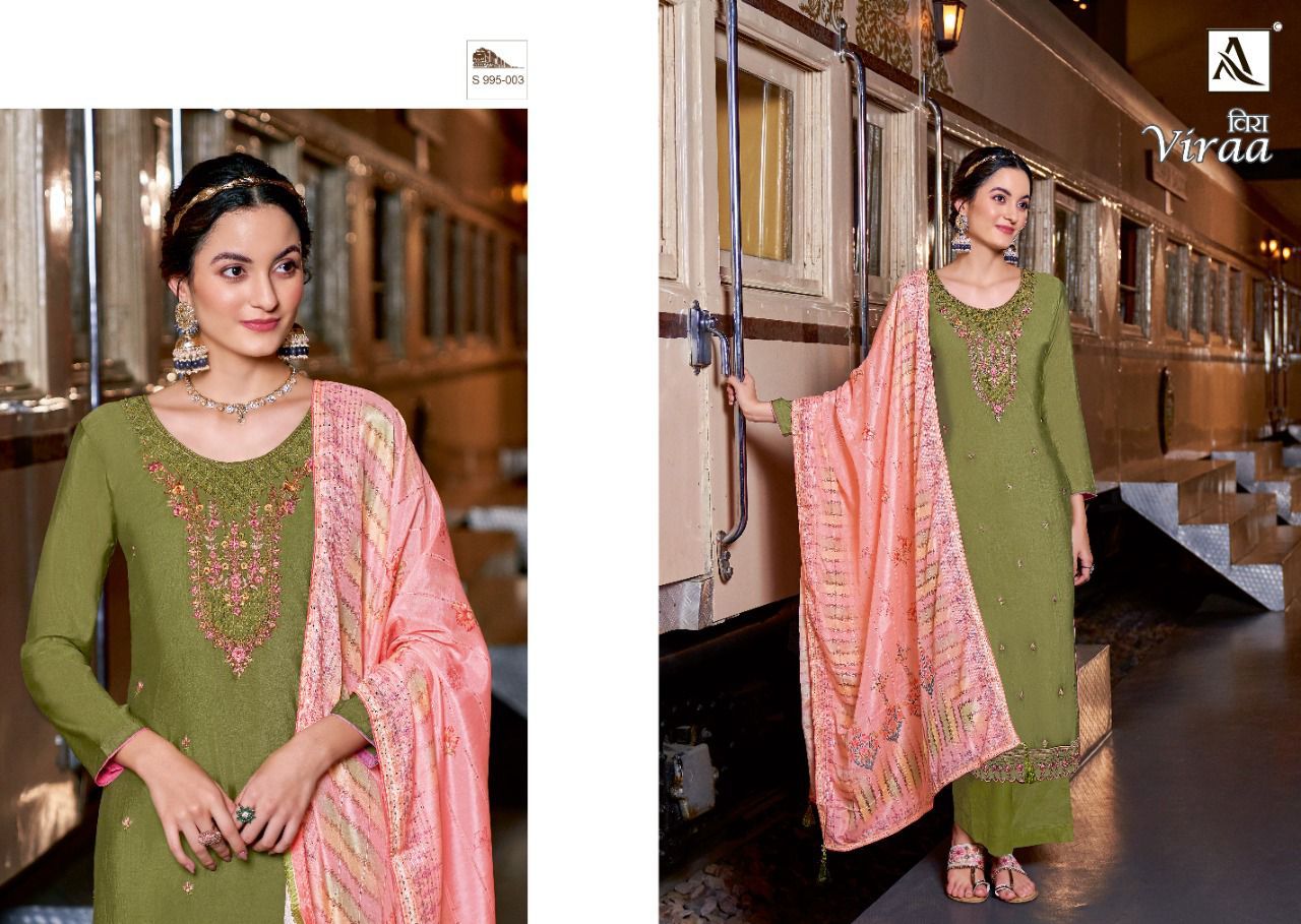 Viraa By Alok Suits Designer With Embroidery Work Viscose Silk Suits Are Available At Wholesale Price