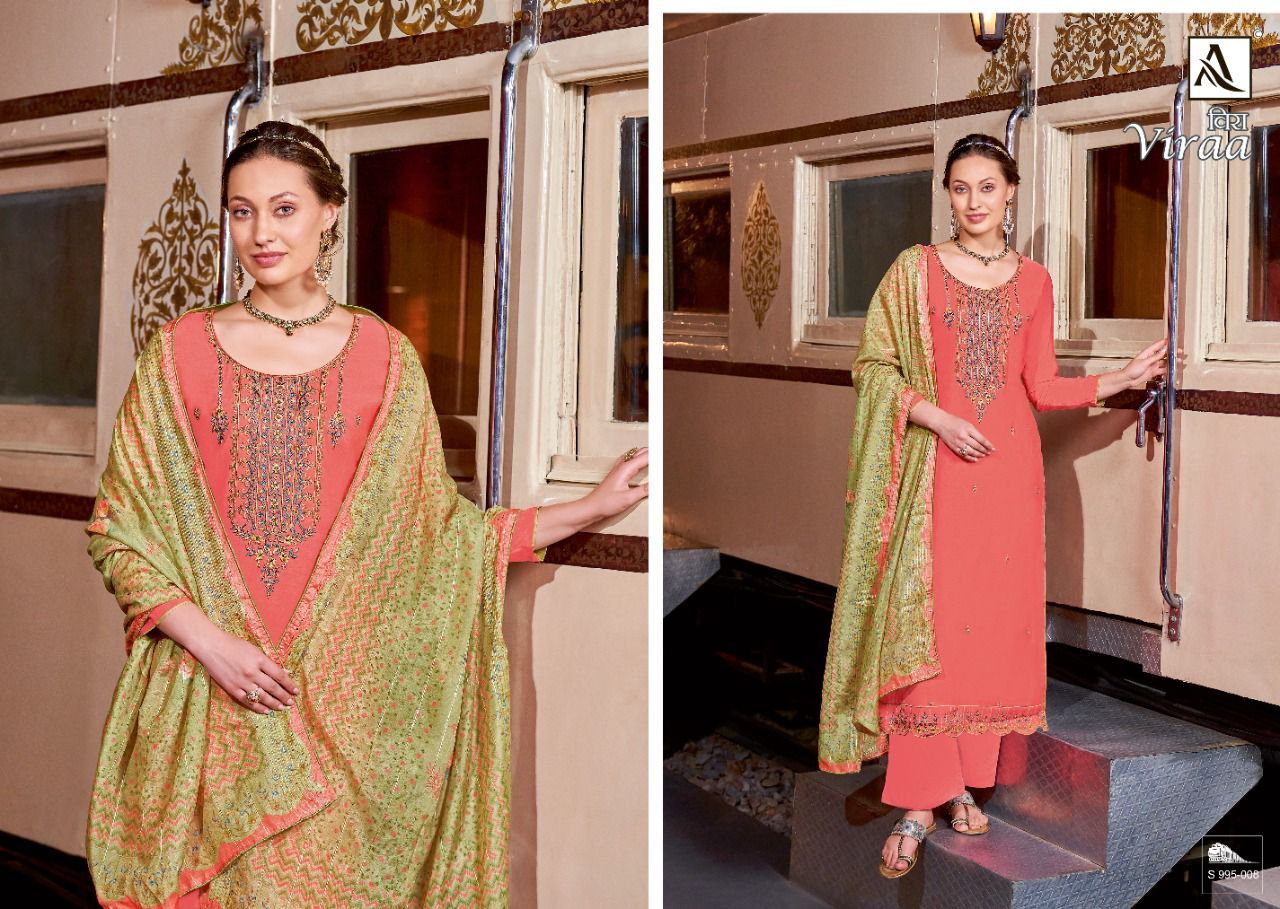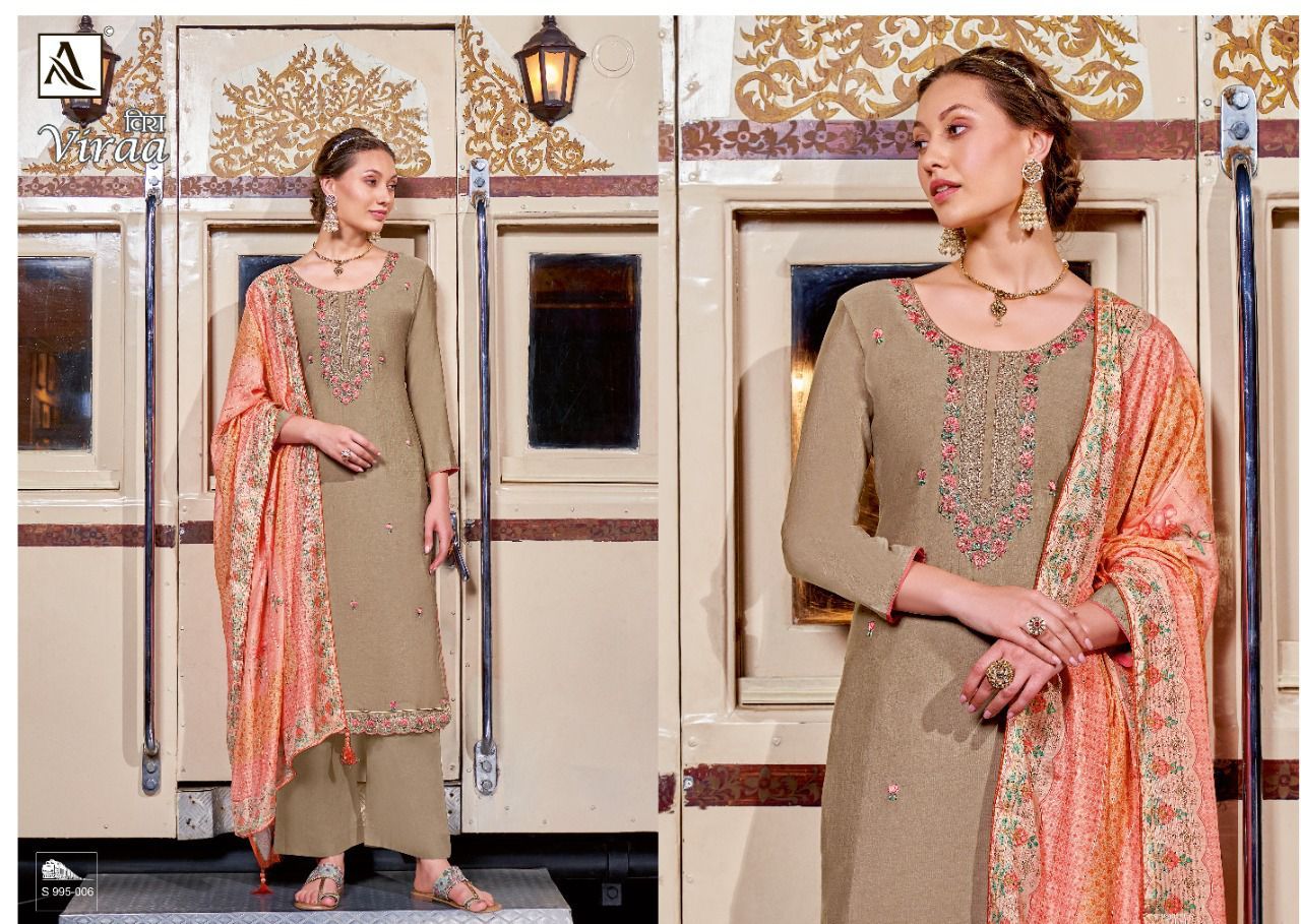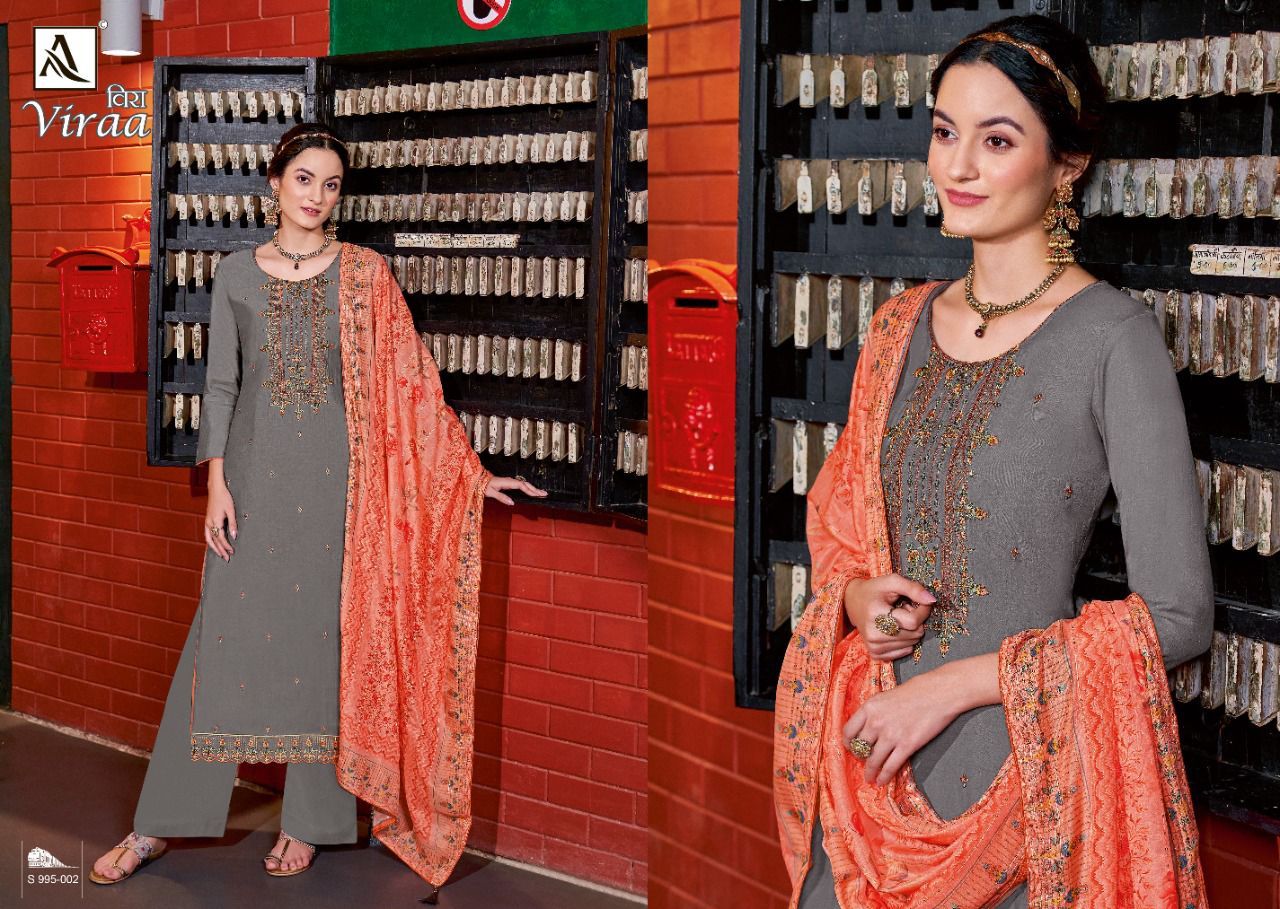 Viraa By Alok Suits Designer With Embroidery Work Viscose Silk Suits Are Available At Wholesale Price