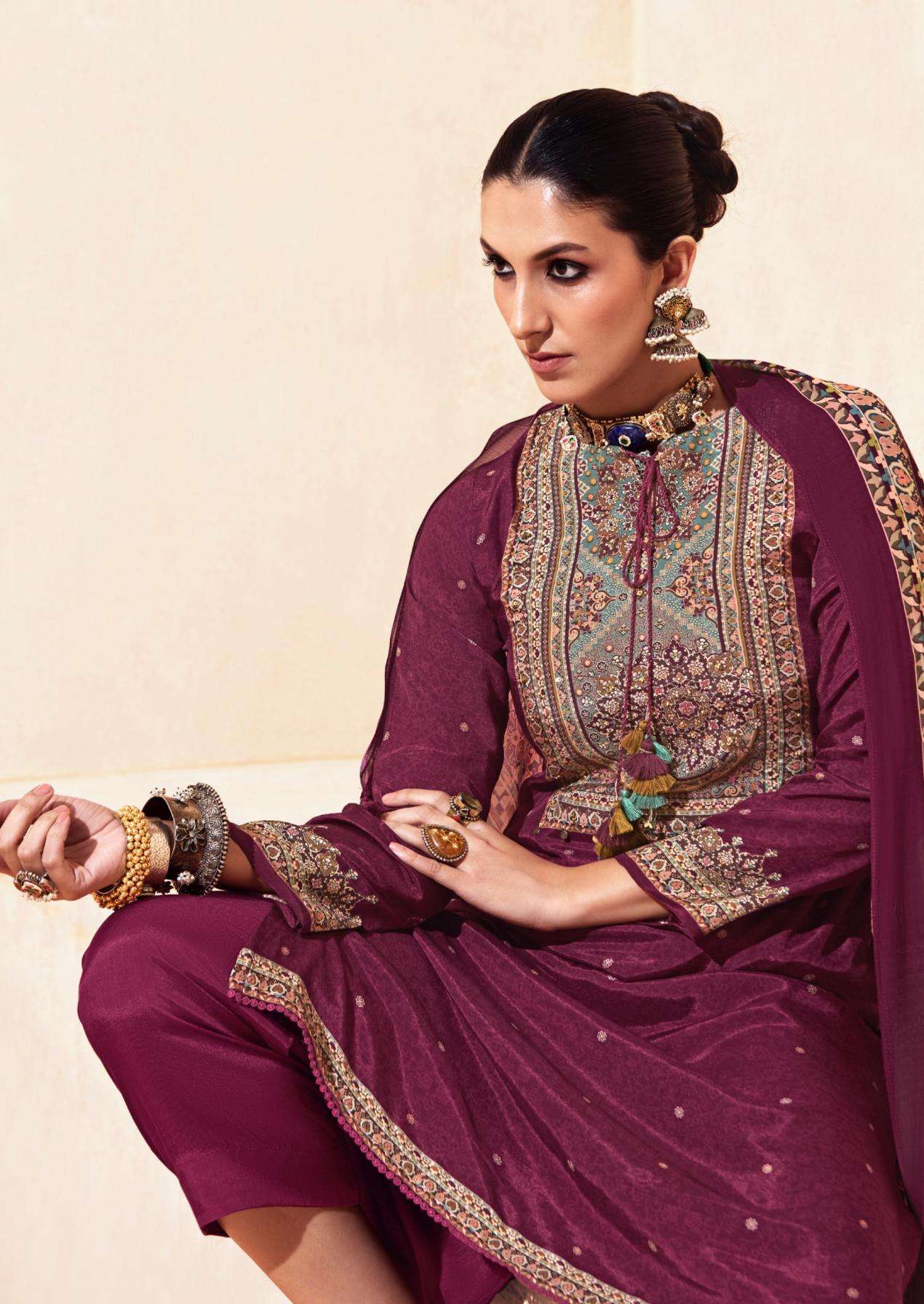 TOP - Pure Bemberg Musline Silk Digital print With Heavy khatli work and Fancy work