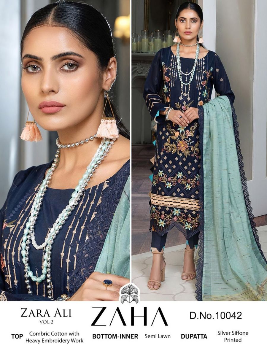 Zara Ali Vol-2 By Zaha Designer With Printed And Embroidery Work Pakistani Style Cambric Cotton Suits Are Available At Wholesale Price