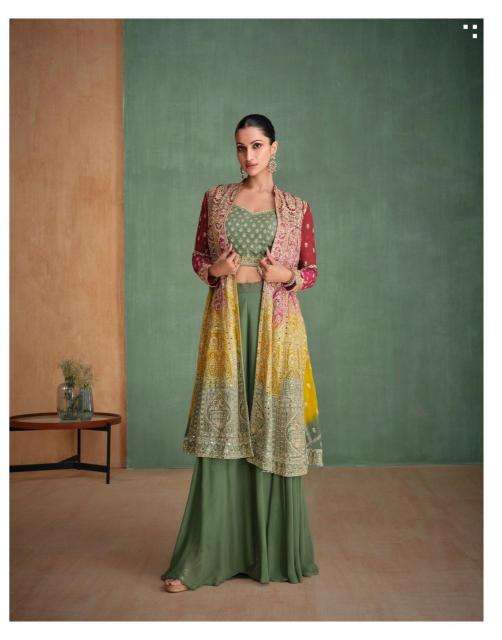 FABRIC - PREMIUM REAL GEROGETTE ( FULL HEAVY LOOK EMBROIDERED WORK FRONT AND BACK WITH ALL OVER HAND EMBELLISHED MIRROR WORK )