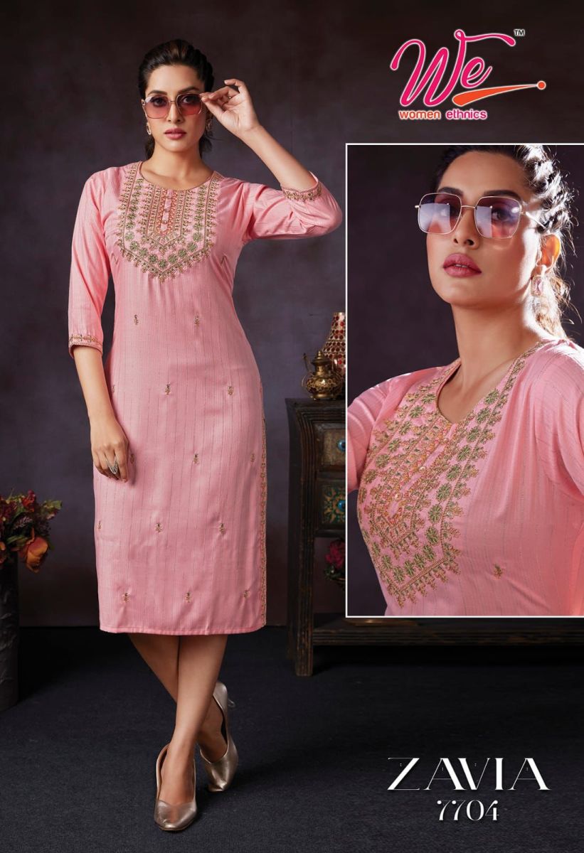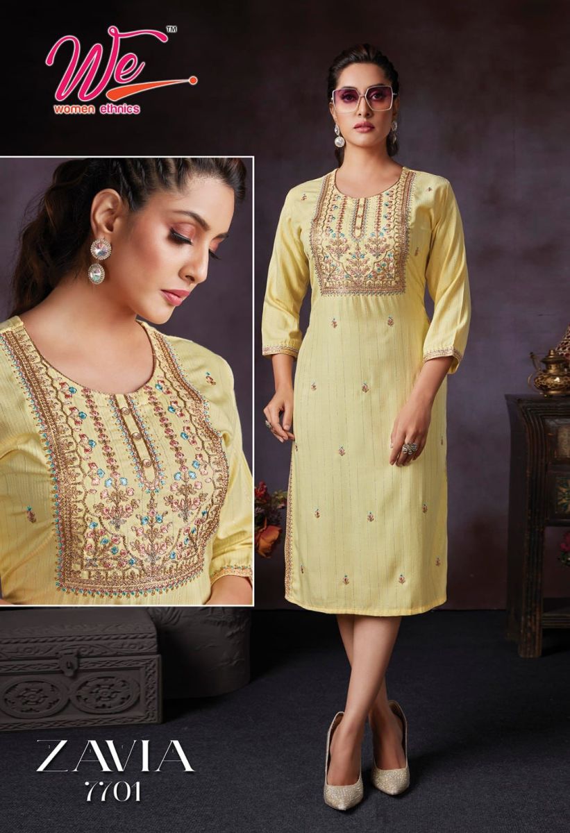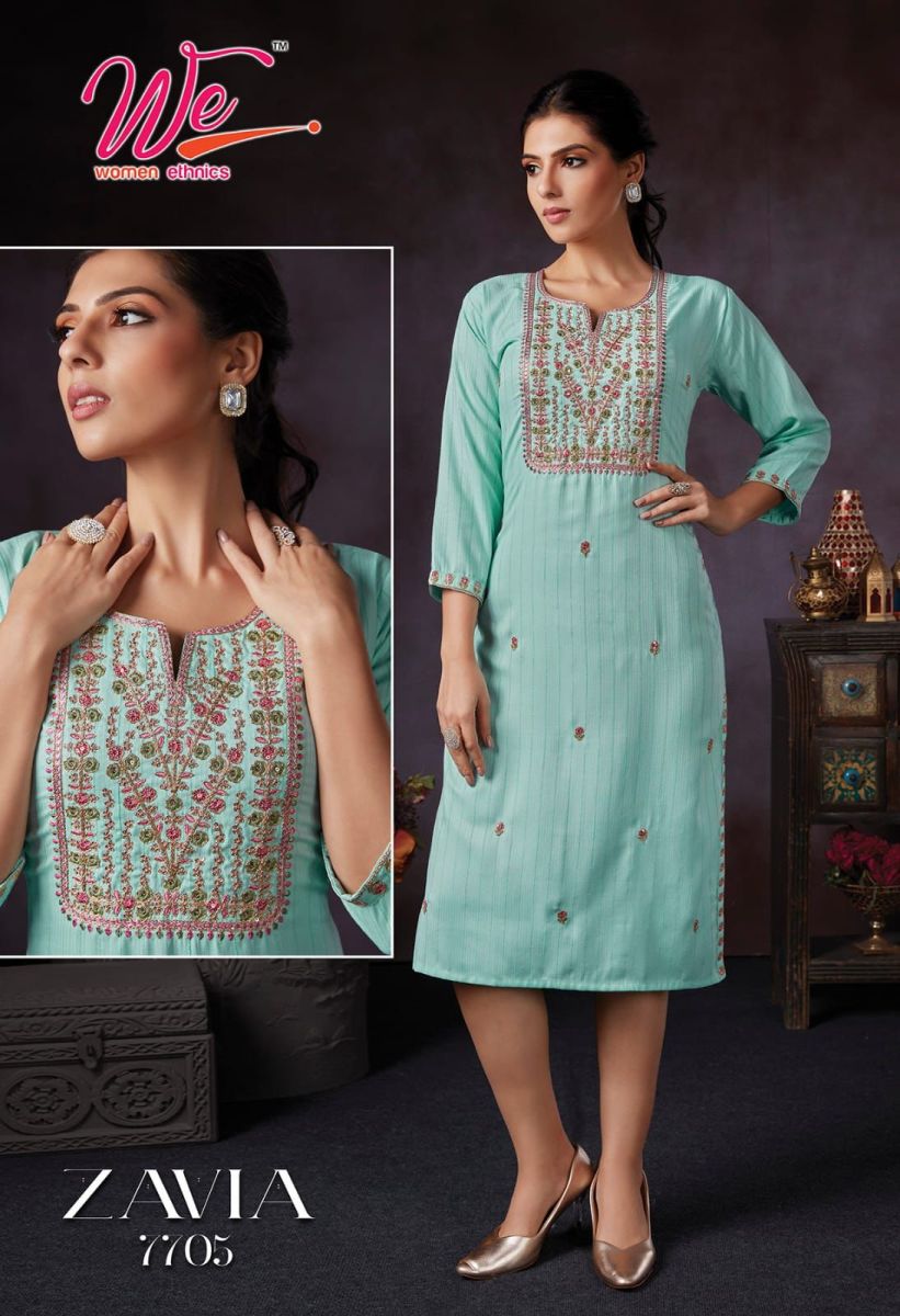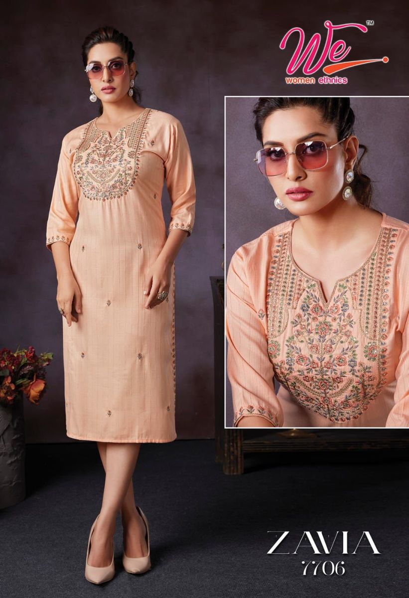 Zavia Kurti By We Designer With Embroidery Work Bombay Weaving Kurtis Are Available At Wholesale Price