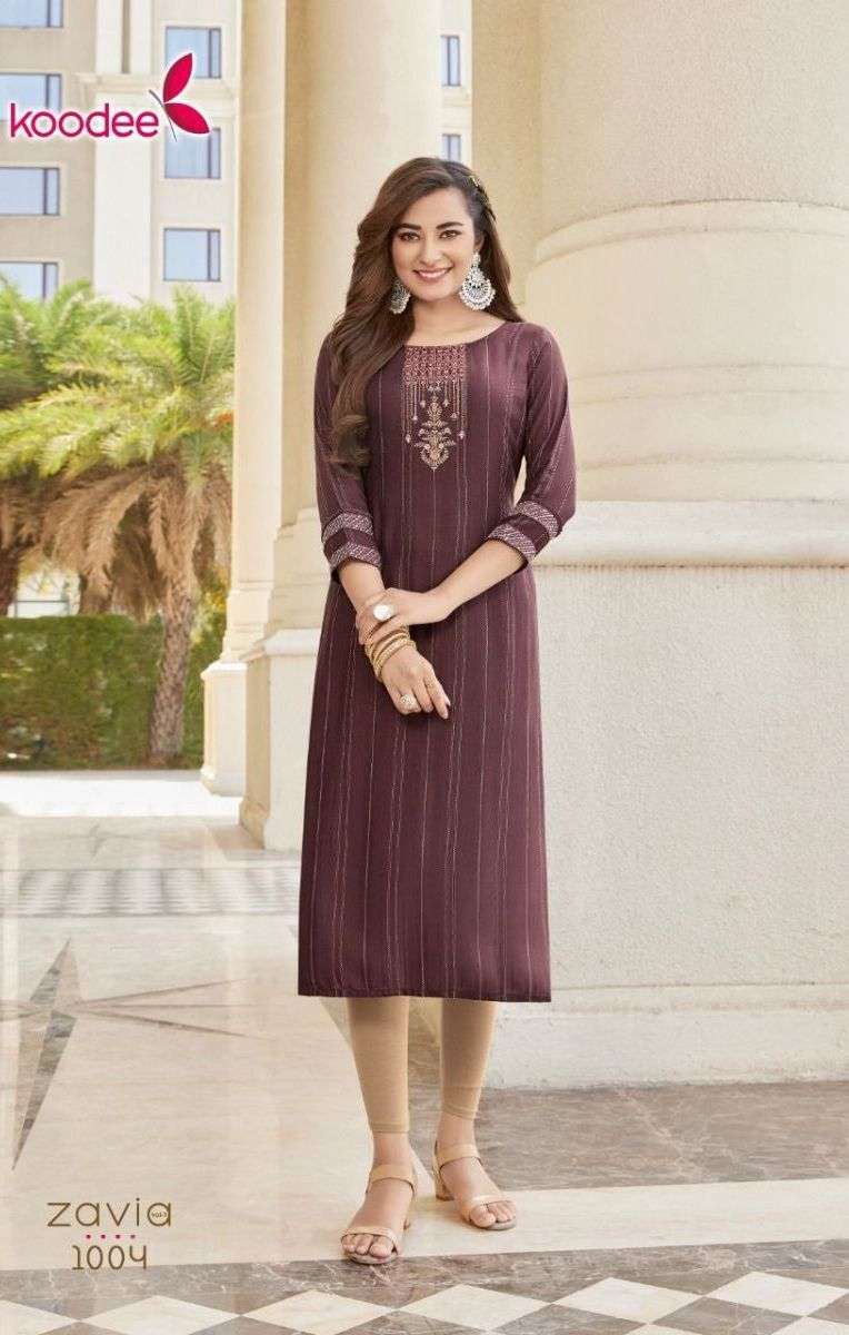 ZAVIA VOL-1 KURTI BY KADLEE DESIGNER WITH KHATLI WORK VISCOSE KURTIS ARE AVAILABLE AT WHOLESALE PRICE