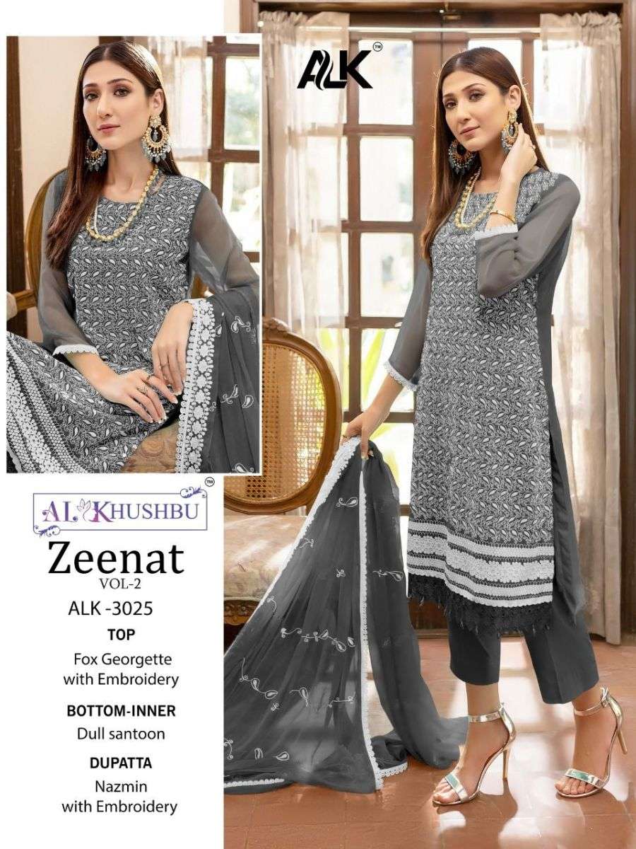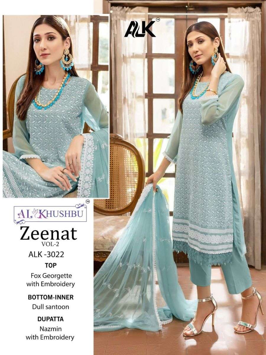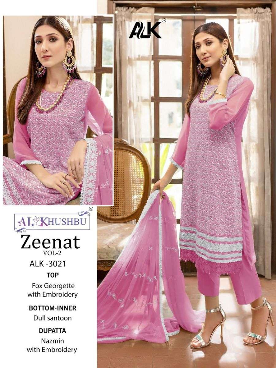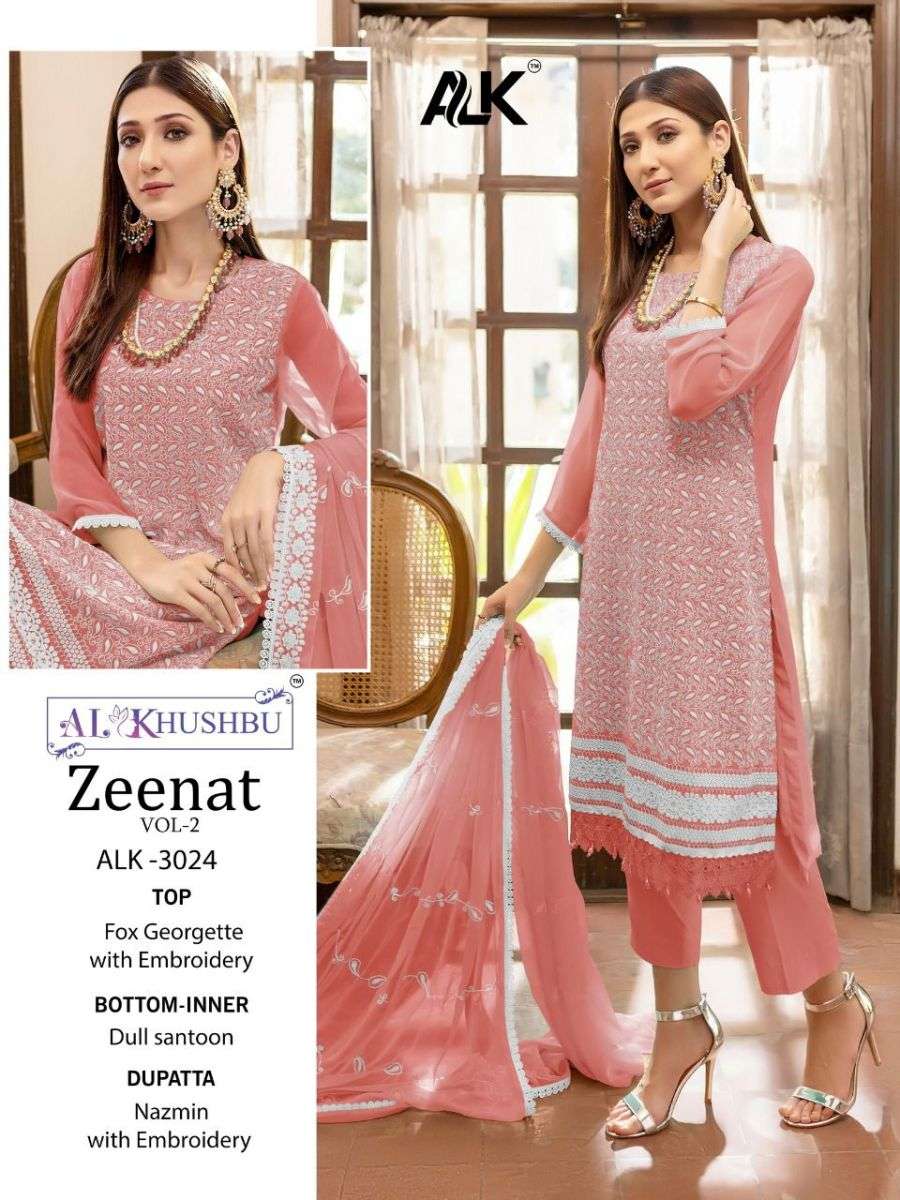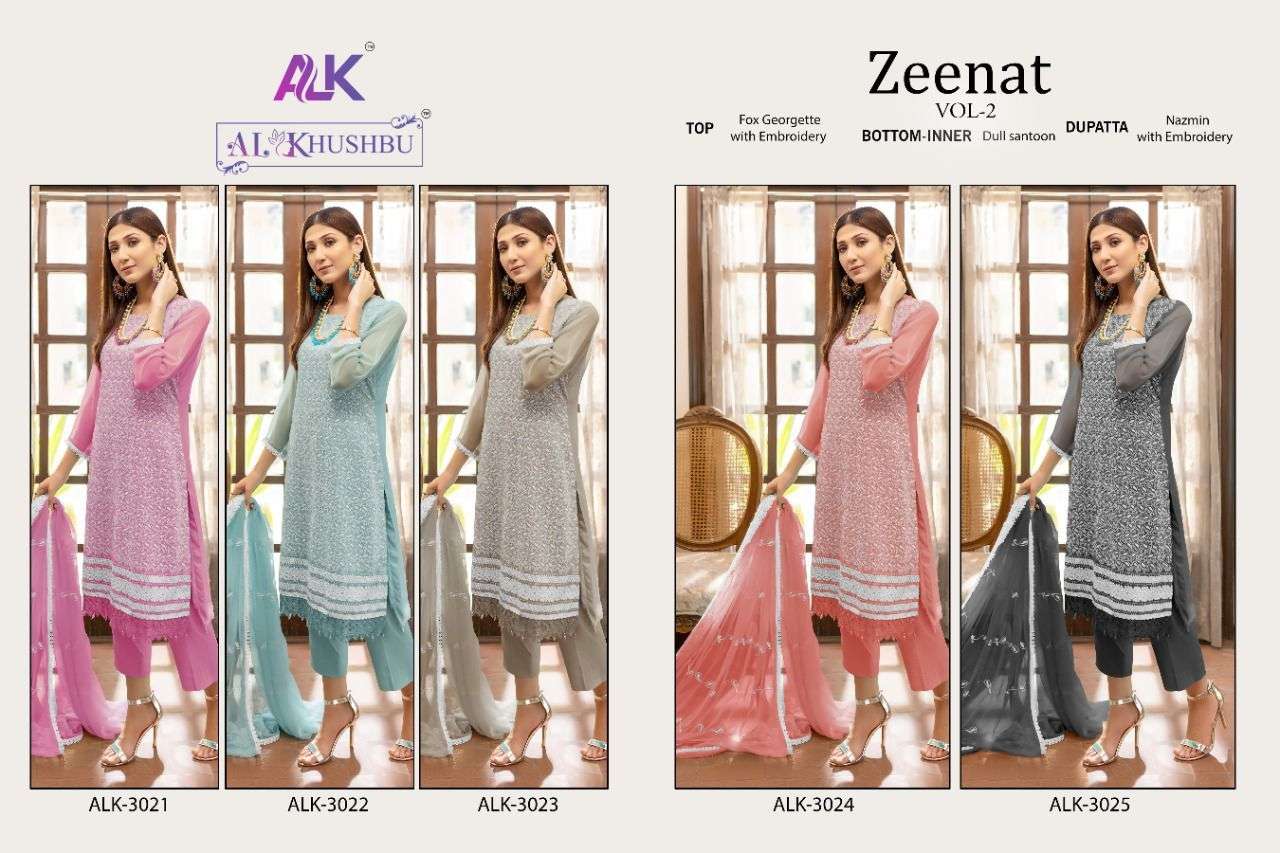 ZEENAT VOL-2 BY AL KHUSHBU DESIGNER WITH WORK PAKISTANI STYLE GEORGETTE SUITS ARE AVAILABLE IN SINGLES AT WHOLESALE PRICE
