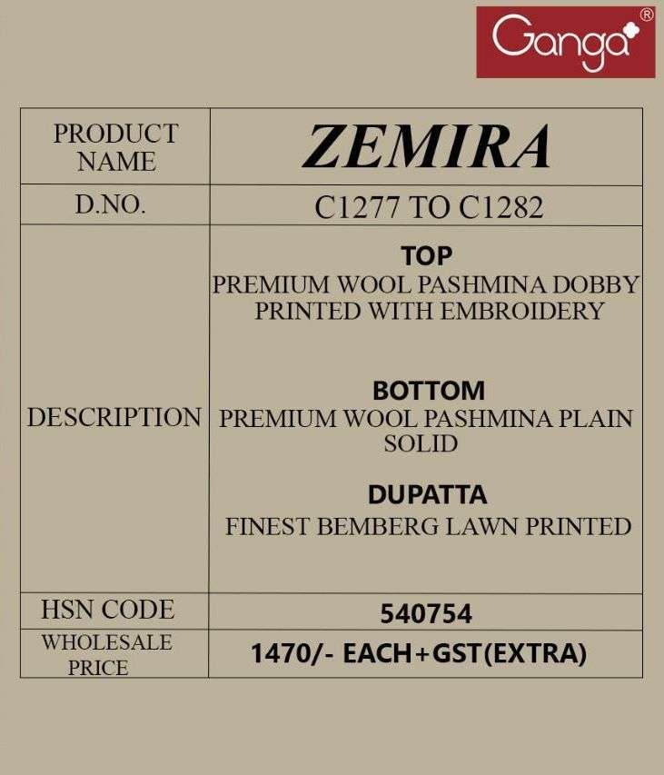 ZEMIRA BY GANGA DESIGNER WITH EMBROIDERY WORK PASHMINA DOBBY SUITS ARE AVAILABLE AT WHOLESALE PRICE