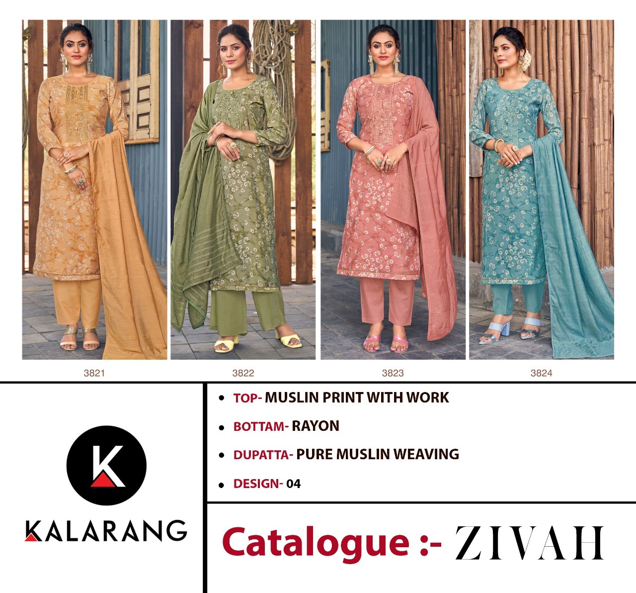 Zivah By Kalarang Designer With Printed Casual Wear Muslin Suits Are Available At Wholesale Price