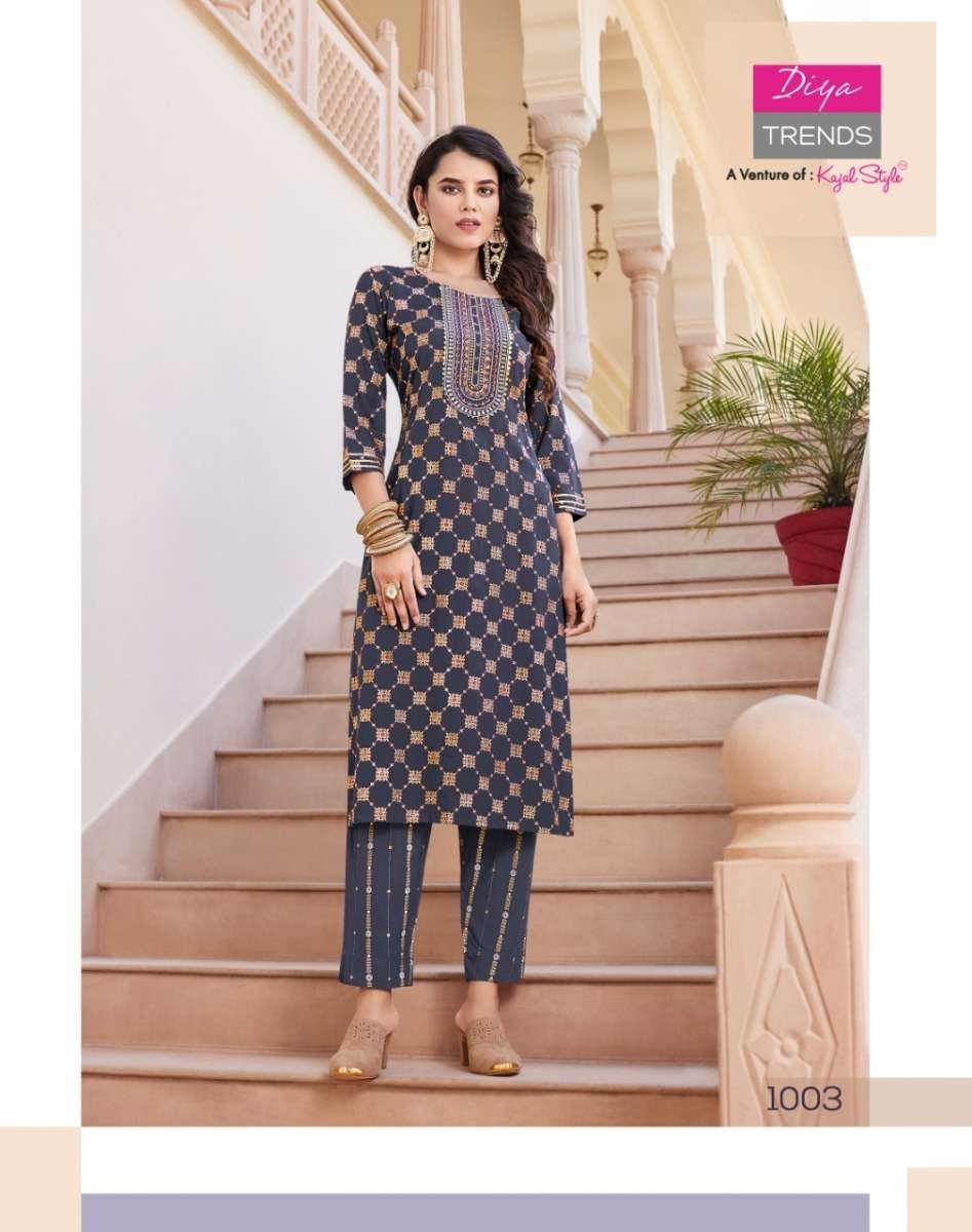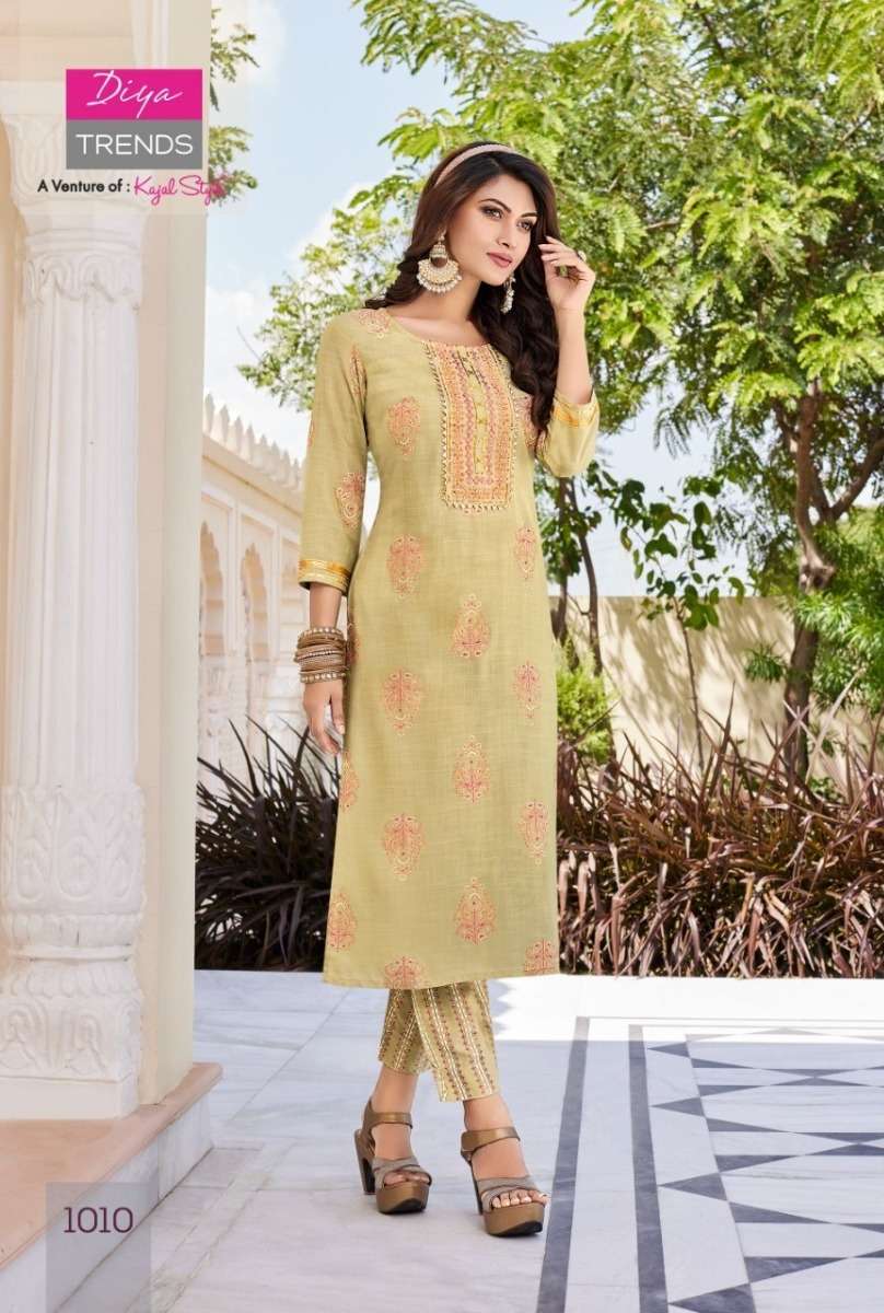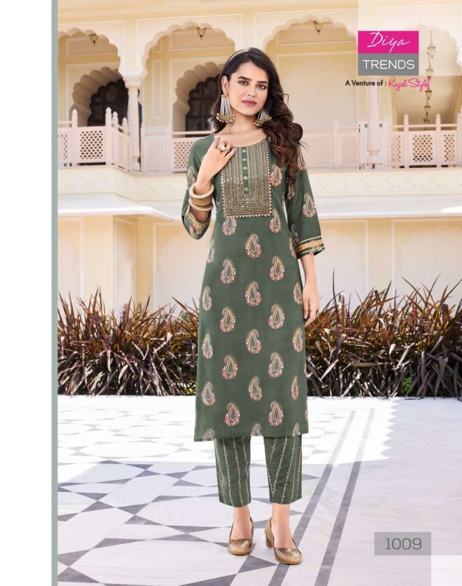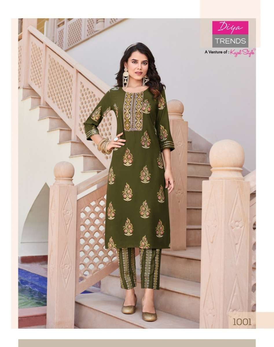 ZOORI VOL-1 KURTI BY DIYA TRENDS DESIGNER WITH PRINTED RAYON KURTI WITH PANT ARE AVAILABLE AT WHOLESALE PRICE