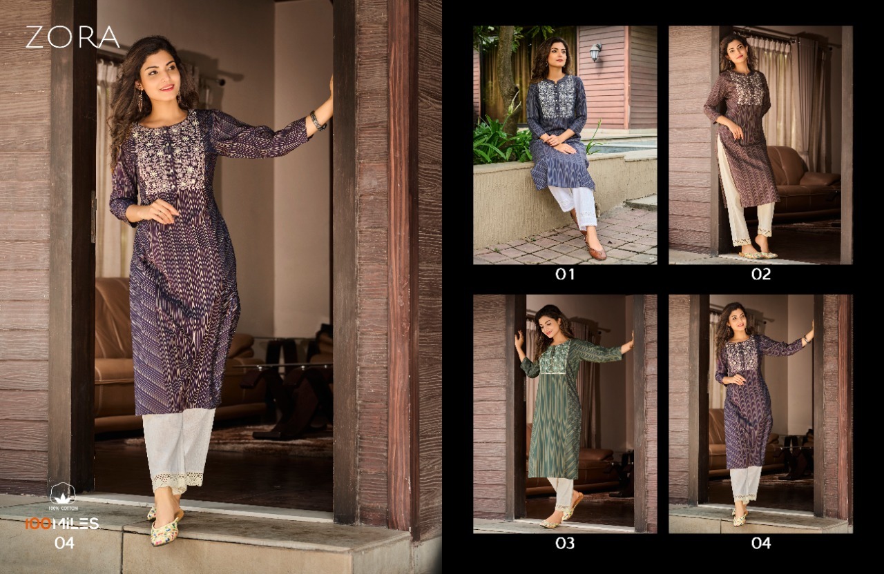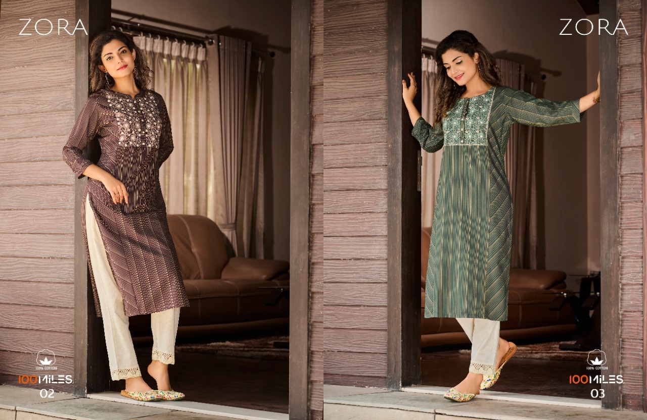 Zora Kurti By 100 Miles Designer With Printed And Work Fancy Long Kurtis Are Available At Wholesale Price