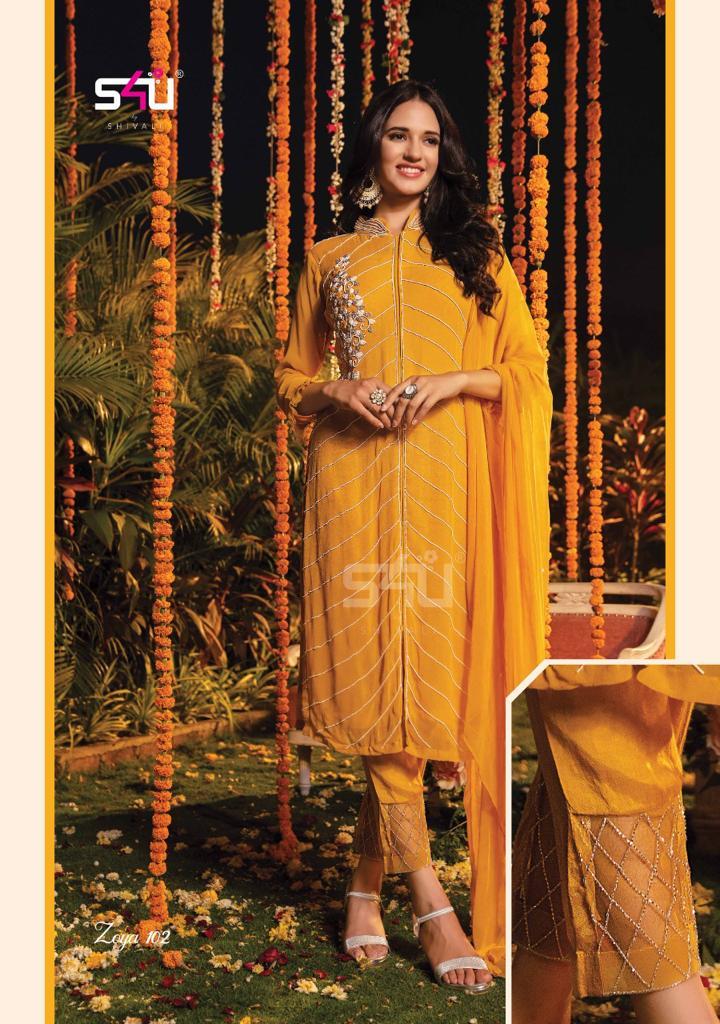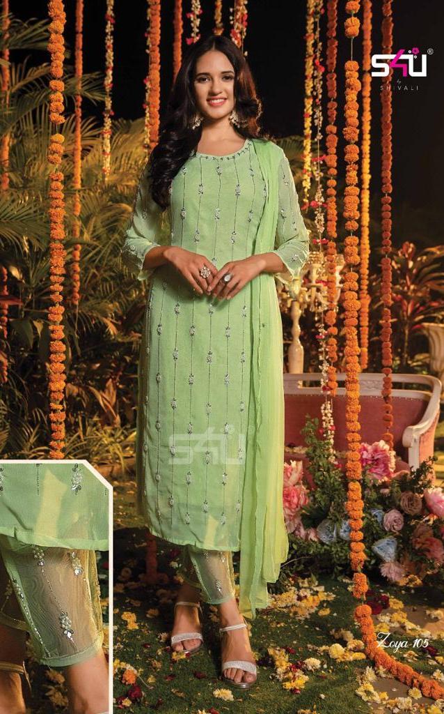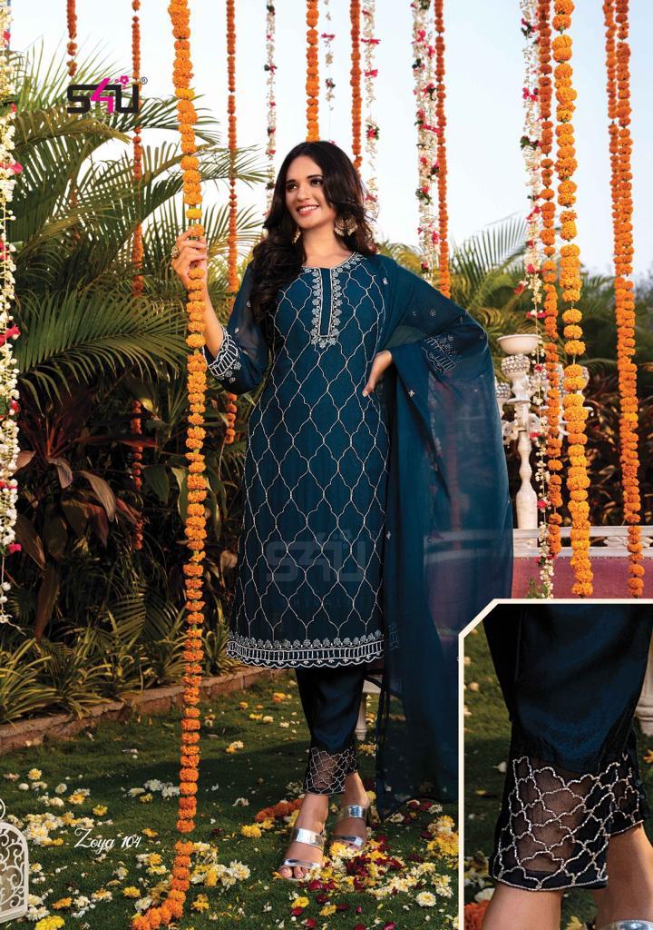 Zoya Kurti By S4u Designer With Embroidery Work Viscose Georgette Kurti With Bottom And Dupatta Are Available At Wholesale Price