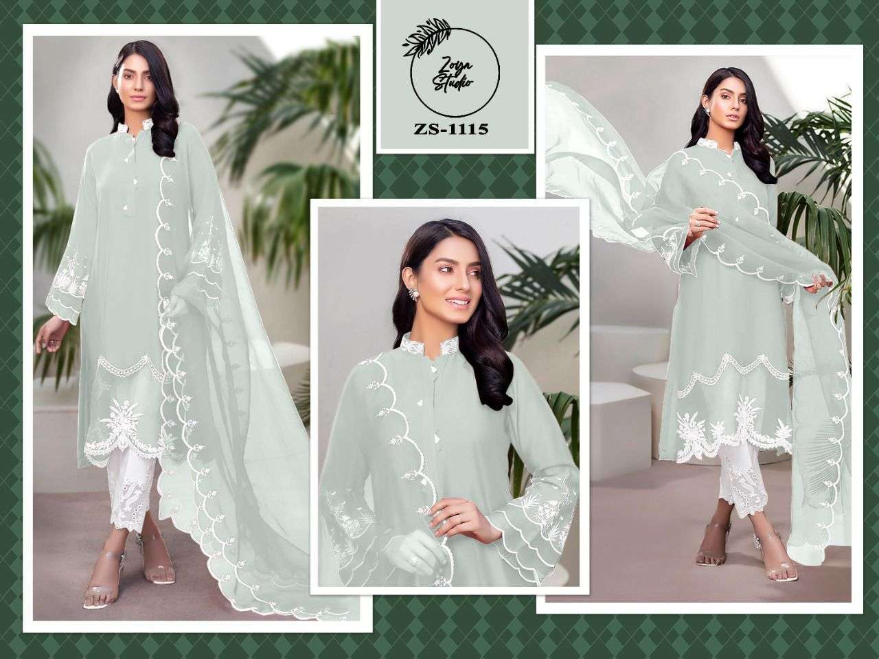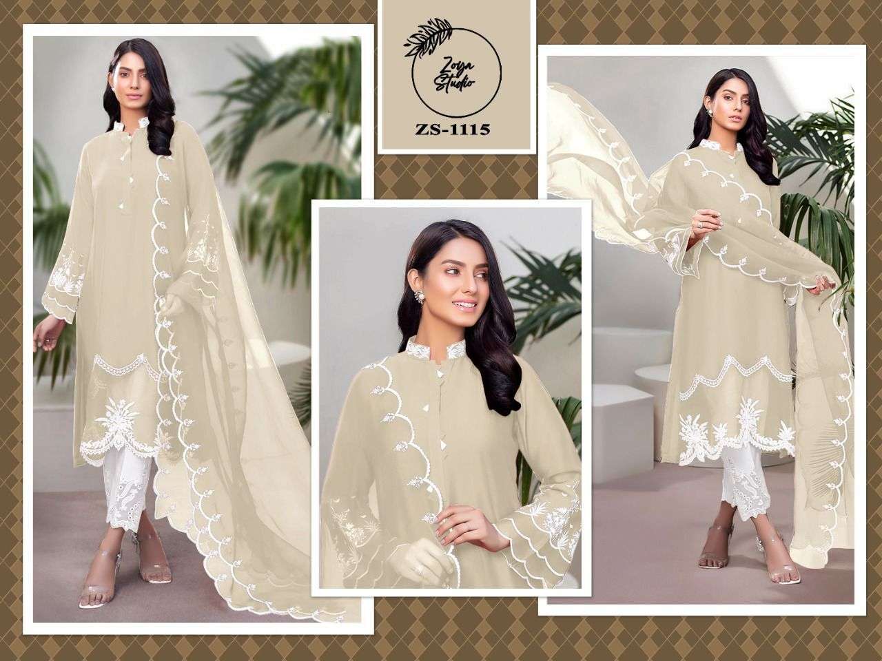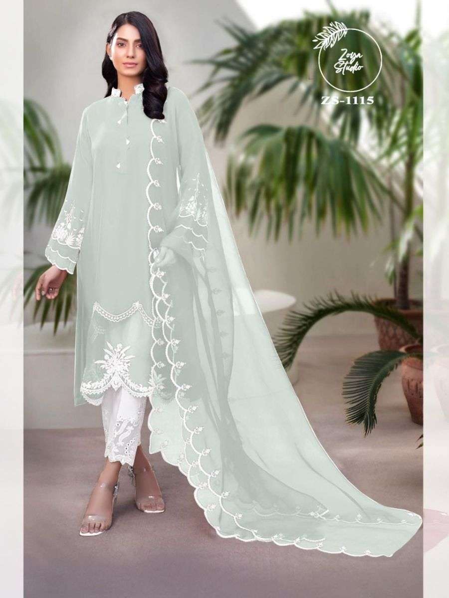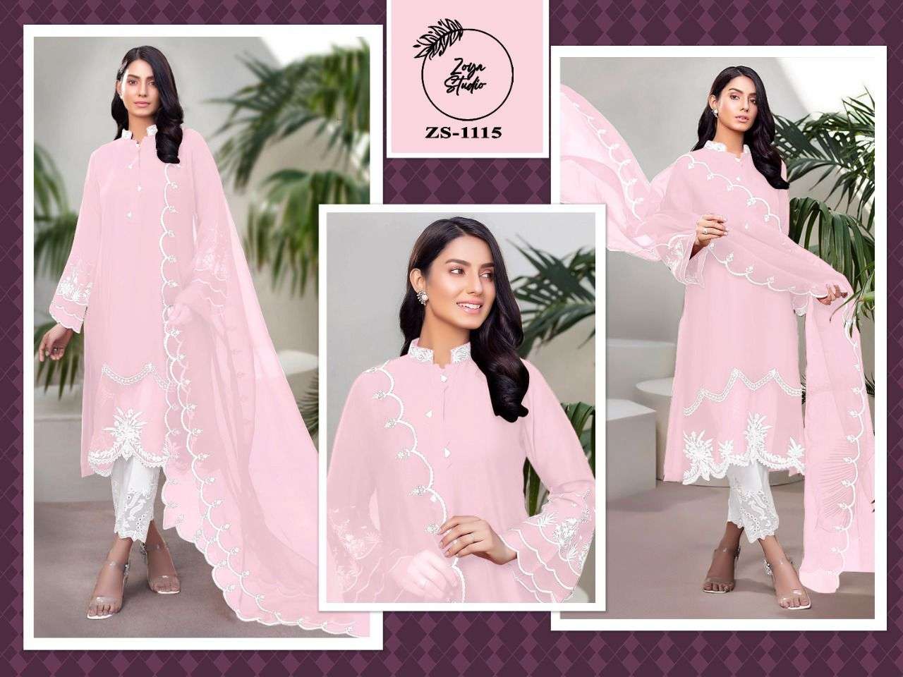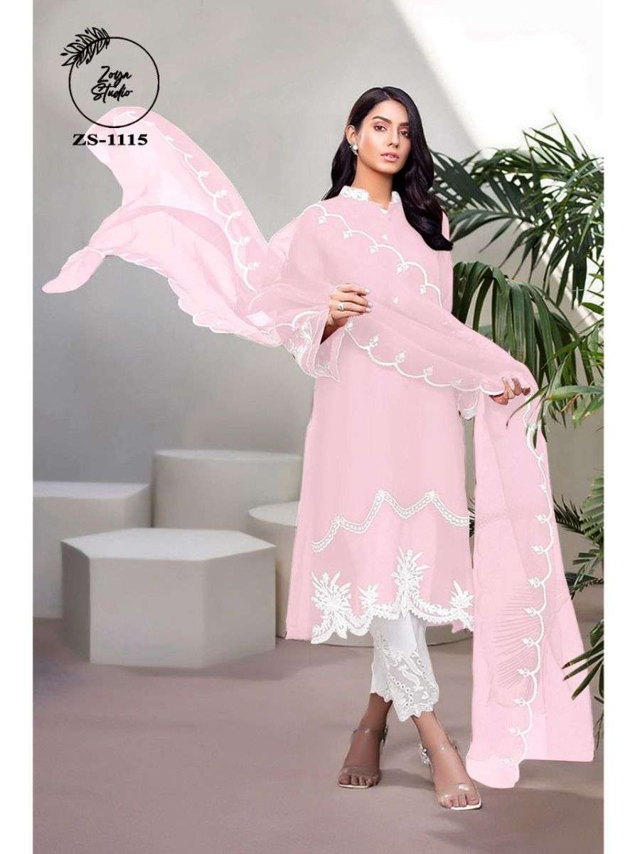 ZOYA STUDIO ZS-1115 DESIGNER WITH WORK GEORGETTE PAKISTANI STYLE KURTI WITH BOTTOM AND DUPATTA ARE AVAILABLE AT WHOLESALE PRICE
