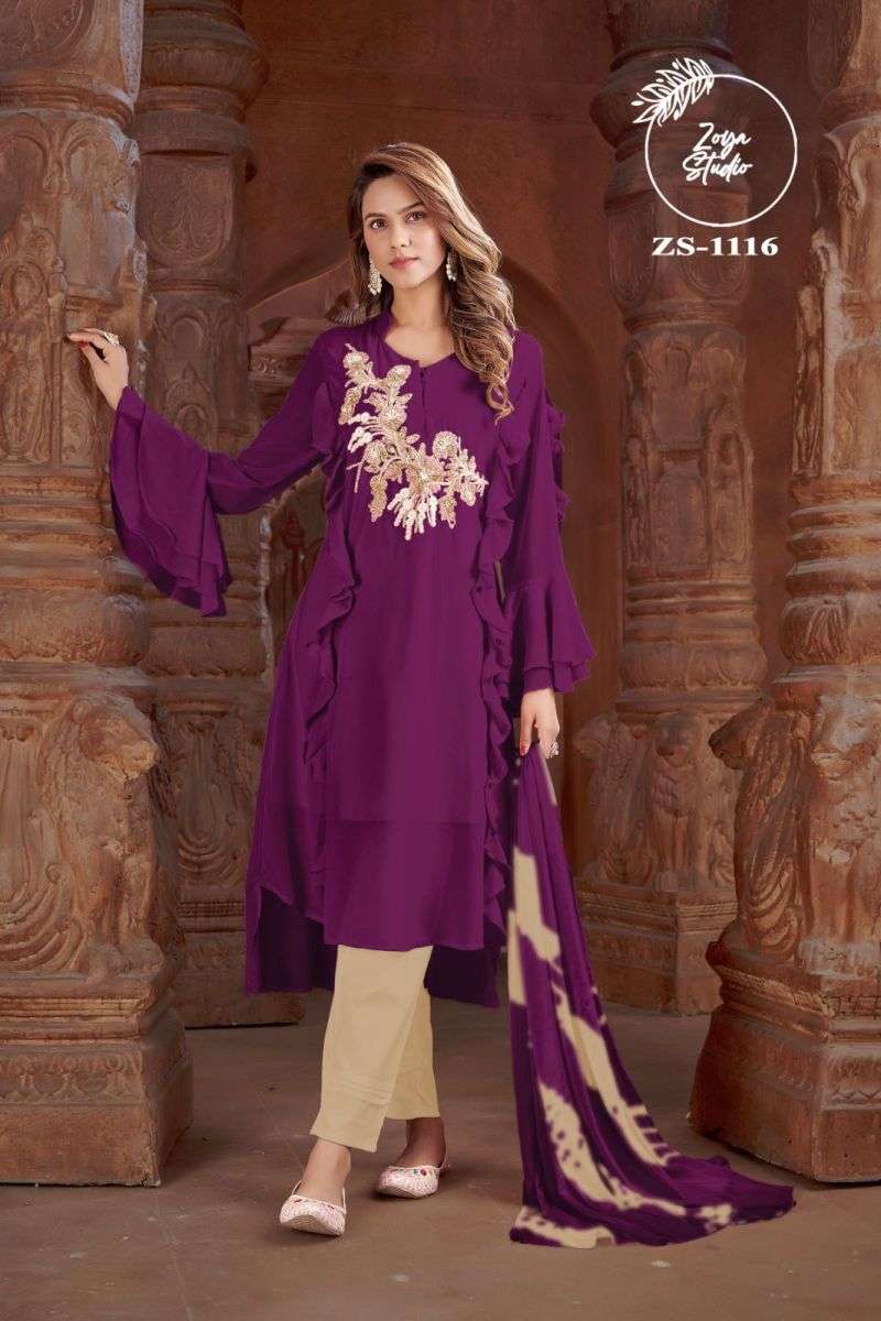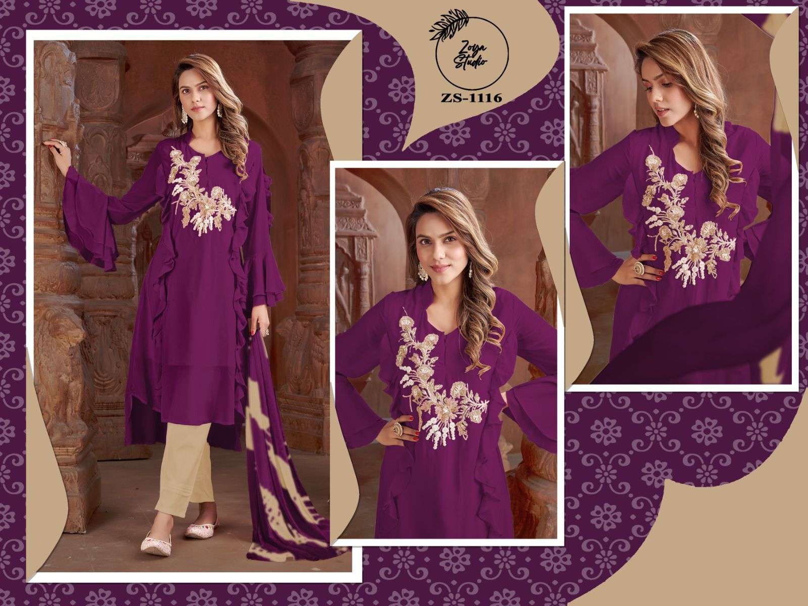 ZOYA STUDIO ZS-1116 DESIGNER WITH WORK GEORGETTE PAKISTANI STYLE KURTI WITH BOTTOM AND DUPATTA ARE AVAILABLE AT WHOLESALE PRICE